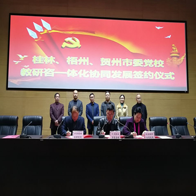 11月20日,桂林、梧州、贺州市委党校教研咨一体化协作发展签约仪式在桂林市委党校举行,我校常务副校长郭坚出席签约仪式。我校副校长罗瑞芬与桂林市委党校副校长黄革新、贺州市委党校副校长杨海明共同签订了三市党校合作发展协议。桂林市委党校常务副校长唐庆林主持签约仪式。…