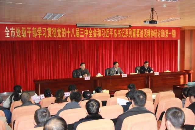 根据安排,从2014年1月中旬起至3月下旬,我校将举办4期轮训班,对全市县处级以上领导干部学习贯彻党的十八届三中全会和习近平总书记系列重要讲话精神进行集中培训。