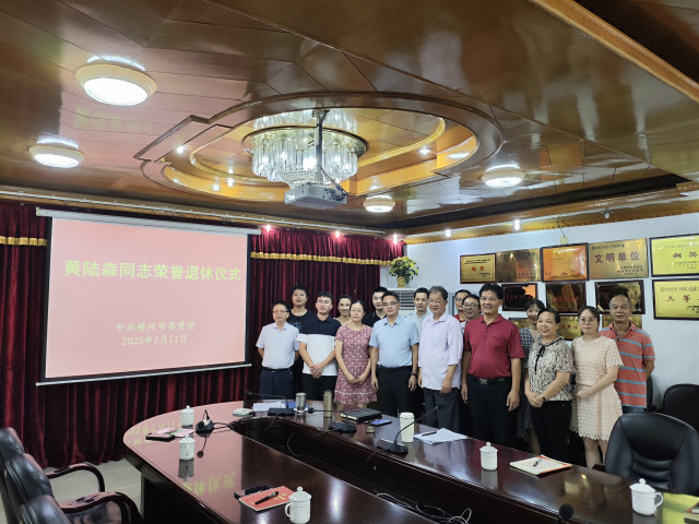 仪式上,黄陆森分享了自己的退休感悟,和与会人员一起重温入党誓词。校领导为其颁发退休证书及赠送退休纪念品。与会的其他同志也纷纷献上美好的祝福。