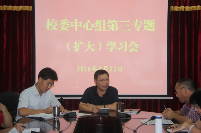 9月23日下午,我校召开校委中心组理论学习扩大会,郭坚常务副校长主持学习会。
