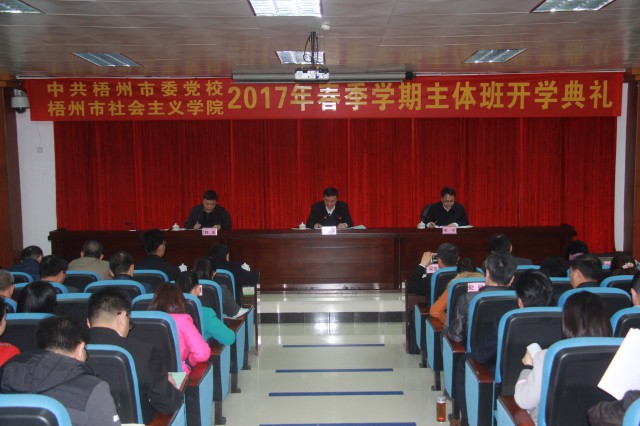 3月7日,中共梧州市委党校、梧州市社会主义学院举行2017年春季学期主体班开学典礼。来自全市各部门单位的124名学员,分别参加为期一个月的第3期新提任处级干部进修班、第21期科级干部进修班、第15期党外中青年干部培训班的学习。