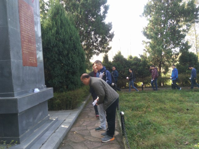 (学员们向“红田”惨案遗址纪念碑敬献白花)