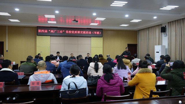 “两广三市”优质课交流活动是我校贯彻落实自治区加强粤桂合作和梧州市委向东发展战略的突出成果,也是由我校倡议并与肇庆、云浮党校联合打造的教学交流合作平台。12月20-21日,由我校主办的第四届“两广三市”党校优质课交流活动在梧州举行。本届活动以学习贯彻党的十九大精神为主题,通过展示精品课程、分享教学经验以及考察岑溪党校现场教学基地、观摩优质课等,实现促进三市党校教学成果的互动和分享的办会目的。
