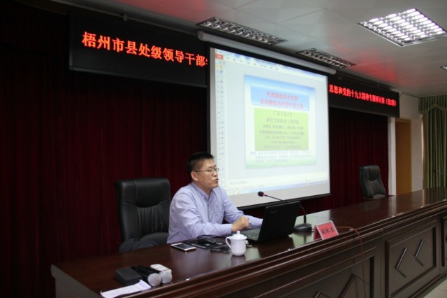 3月20日下午,广东工业大学研究生院常务副院长、机电工程学院二级教授、博士生导师阎秋生应邀来到我校,为梧州市第2期县处级领导干部学习贯彻习近平新时代中国特色社会主义思想和党的十九大精神专题研讨班学员作专题讲座。