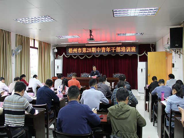 10月15日上午,副市长黄恩应邀来到我校,为第28期中青年干部培训班学员作《深入实施绿色发展战略 打造美丽梧州》专题报告。