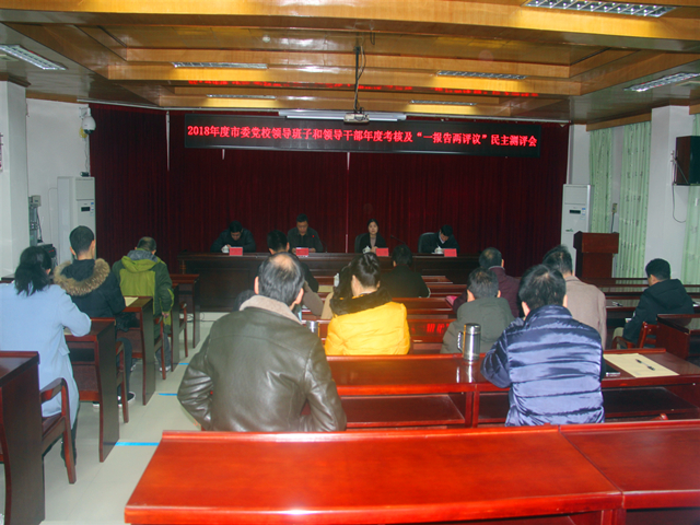 2月26日上午,市委党校召开2018年度领导班子和领导干部年度考核及“一报告两评议”民主测评会。市委组织部考核组成员到会指导,市委党校在编干部职工参加会议。