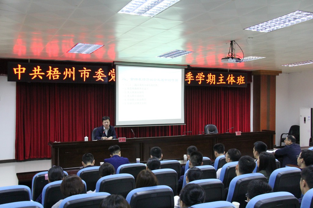 5月8日上午,市委常委、常务副市长吴浩岭来到我校,为2019年春季学期主体班学员作题为《强化创新驱动,拓展经济发展空间,提升梧州金融业发展水平》的专题报告。