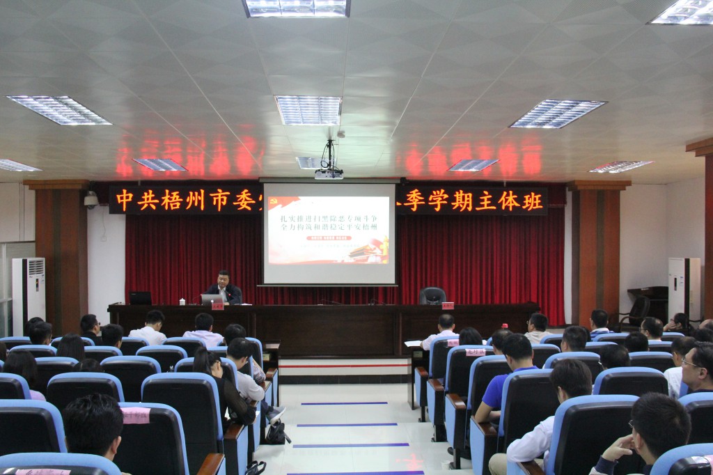 文建中以《扎实推进扫黑除恶专项斗争 全力构筑和谐稳定平安梧州》为主题,从开展扫黑除恶专项斗争的历史背景、重大意义、扫黑除恶相关知识点介绍以及我市开展扫黑除恶专项斗争工作情况、下一步如何推进扫黑除恶专项斗争向纵深发展等各个方面进行了深入浅出的讲解。