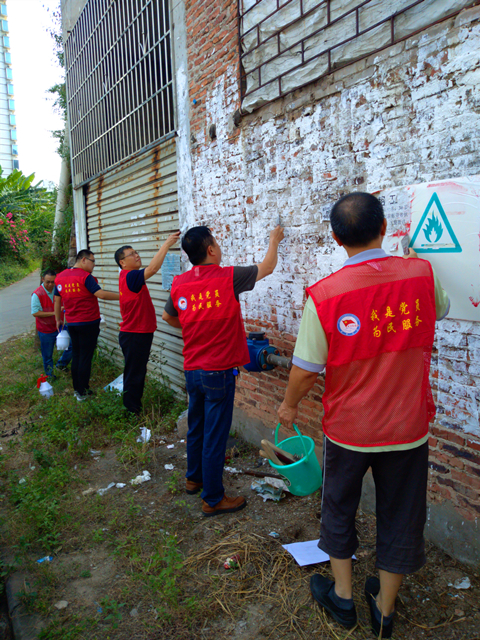 本次志愿活动,郭坚带领党校的同志和社区居委会工作人员,一起到该社区宝石里清理了牛皮癣、清除了杂草、清扫了卫生死角,向有关住户宣传了全市开展“四城联创、门前三包”等要求。与此同时,郭坚边劳动边向参加服务活动的社区居委会同志了解该社区的党组织建设、班子建设、人员配备、创城工作、卫生保洁等情况,并就如何搞好社区卫生保洁等工作,与社区同志进行了探讨交流,提出了意见建议。