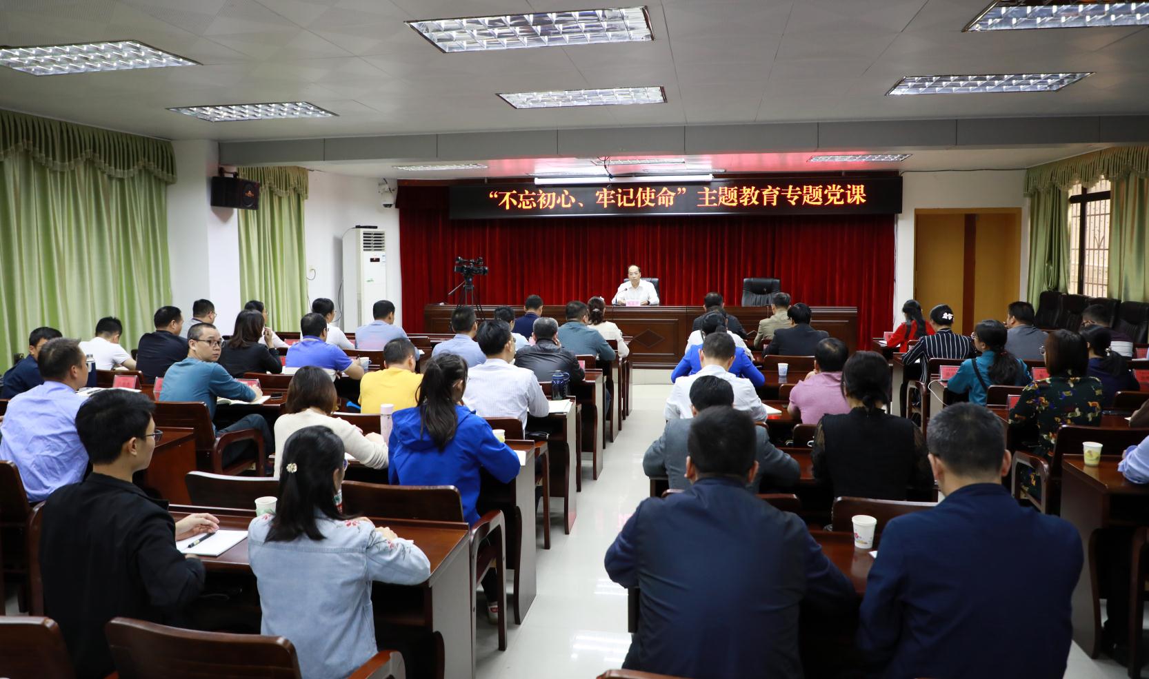 专题党课由市委组织部常务副部长陈坚主持。梧州市第29期中青年干部培训班学员、市委组织部部务成员及机关全体干部、市委党校主要领导及教师代表约120人到场聆听。