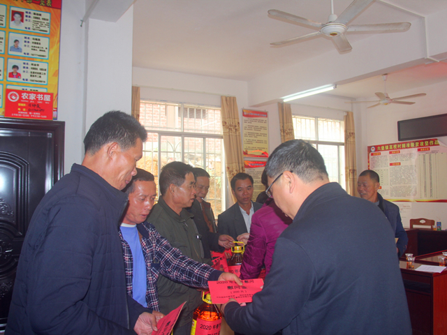 1月15日,由市人大常委会副主任苏建中带队,市委党校郭坚常务副校长等陪同,到该校扶贫联系村——苍梧县六堡镇高枧村慰问贫困户13户,为他们送去慰问金和食用油等物品,送上新春的问候和祝福,勉励他们克服困难,增强信心,努力追求更加美好的幸福生活。