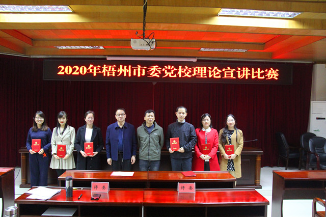 本次共有14名年轻教师参赛,围绕习近平新时代中国特色社会主义经济思想、生态文明思想、关于宣传思想工作重要思想、关于党的建设、扶贫工作、全面依法治国等重要论述、关于新冠肺炎疫情防控等最新重要讲话精神,以及党的十九届四中全会精神,自治区党委赋予梧州的新定位新要求和梧州市委市政府中心工作等内容开展十五分钟的理论宣讲,在比赛过程中,参赛老师通过讲故事、快板、朗诵……等多种形式,精准把握理论大众化通俗化,主题鲜明深刻,格调积极向上,赛出了水平,赛出了成绩,赛出了风格。比赛最终评选出一等奖一名,二等奖两名,三等奖三名。