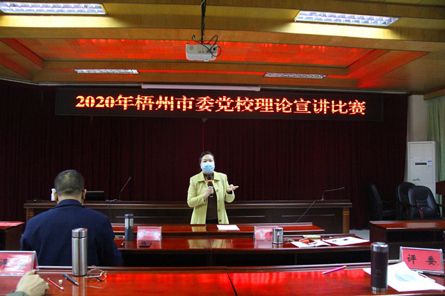 为响应市委宣传部、市委讲师团组织开展全市理论宣讲比赛的号召,持续推动学习宣传贯彻习近平新时代中国特色社会主义思想,让党的创新理论“飞入寻常百姓家”,4月23日,我校举办了2020年梧州市委党校理论宣讲比赛。
