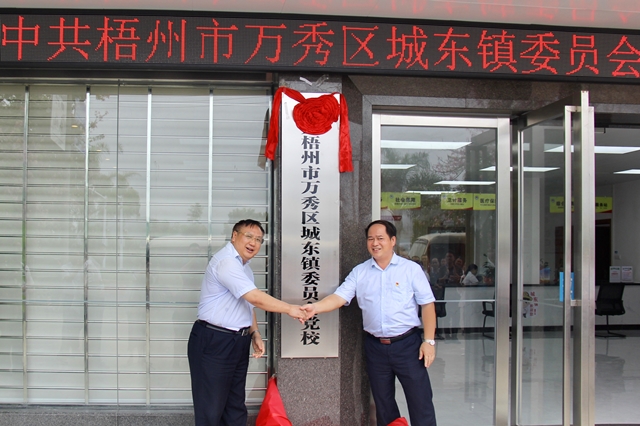 9月9日上午,中共万秀区城东镇党委党校正式挂牌成立。广西区委党校副校长、一级巡视员李彦明,梧州市委书记全桂寿出席并共同为城东镇党校揭牌。