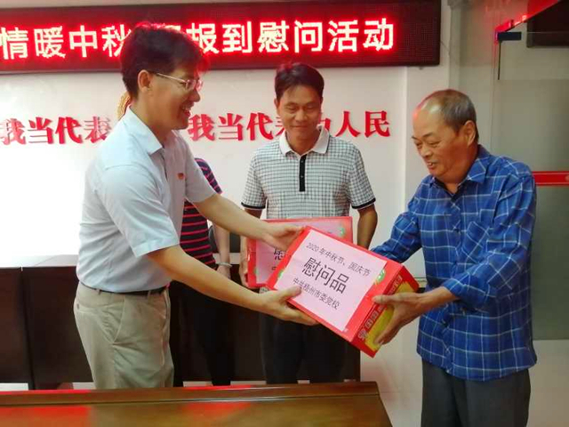 中秋、国庆双节将至,9月29日上午,我校副校长莫汝杰代表学校到西环社区开展“情暖中秋、喜迎国庆”主题活动。活动中莫汝杰与困难群众一起座谈交流,听取他们的需求和呼声,并对困难群众开展了慰问,把党和政府的温暖送到他们的心坎上。