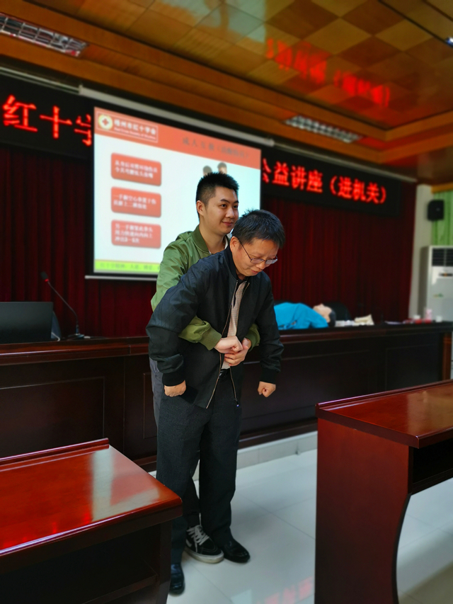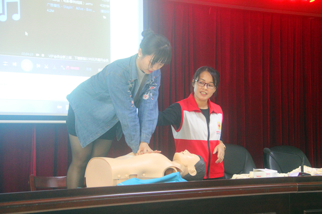 10月21日,市红十字会到我校开展应急救护知识技能培训,参训人数约50人,培训内容主要是心脏骤停现场心肺复苏术、气道异物梗阻法、常见急症和意外伤害的预防和现场急救、突发事件中的防灾避险和现场急救等知识技能、红十字运动有关知识等。