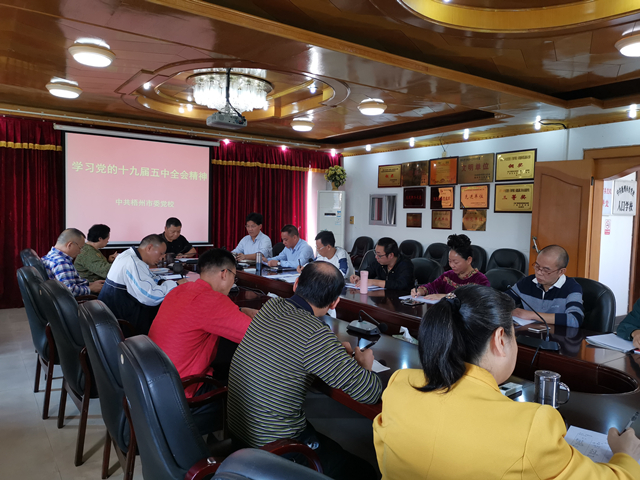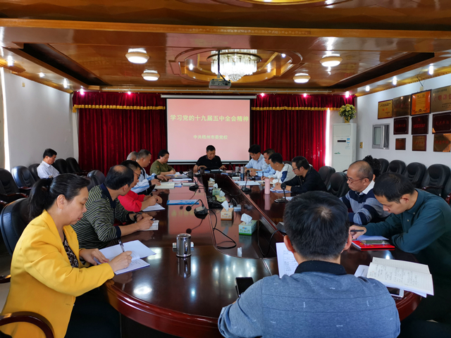 11月16日下午,市委党校举行校委会理论学习中心组专题学习会,认真传达学习党的十九届五中全会精神。常务副校长郭坚主持会议并讲话。校委班子成员和校中层领导干部参加会议。