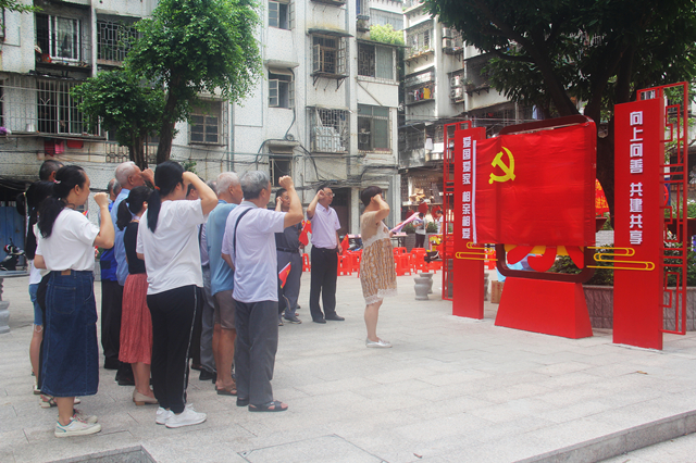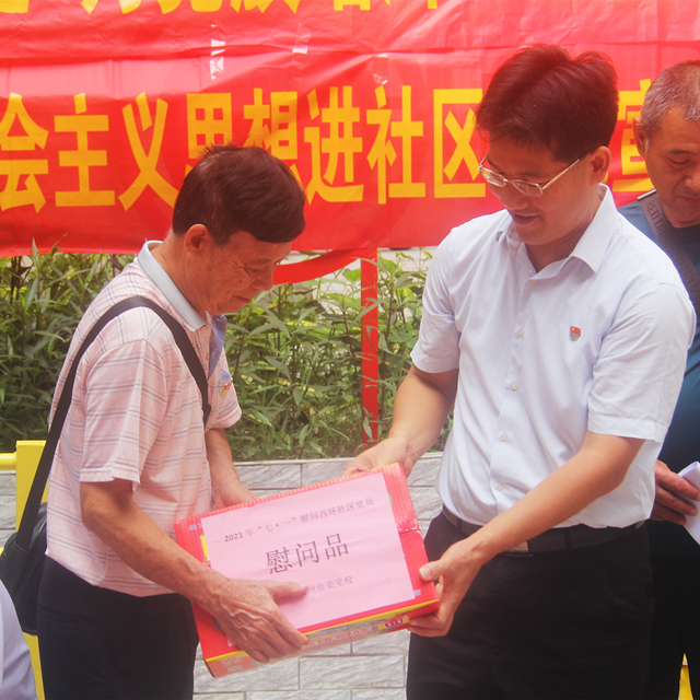 6月25日,市委党校副校长莫汝杰一行参加了本校双报到社区万秀区东兴街道西环社区大党委举办的“庆百年华诞 为党旗增辉”主题活动,与社区党员干部代表、其他双报到单位代表共庆中国共产党建党100周年。
