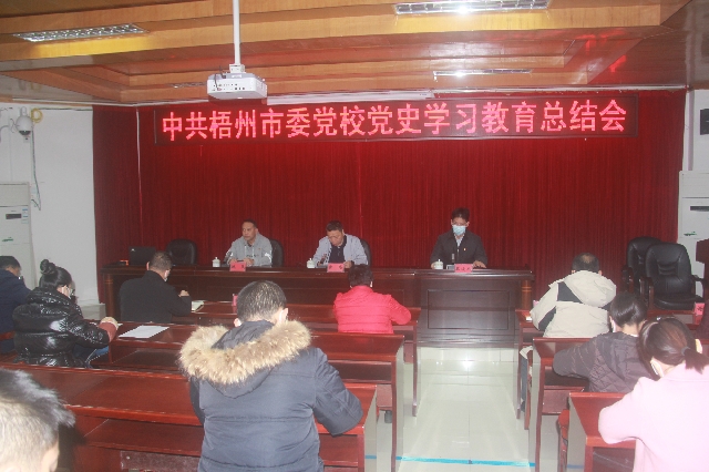 为深入学习贯彻习近平总书记重要指示、重要讲话精神和中央、自治区、梧州市党史学习教育总结会议精神,全面回顾总结党校党史学习教育开展情况,部署巩固拓展党史学习教育成果工作,2022年1月10日上午,我校召开党史学习教育总结会,常务副校长、校党总支书记郭坚强调,要坚持以习近平新时代中国特色社会主义思想为指导,不断巩固拓展党史学习教育成果,弘扬伟大建党精神,激励全校上下更好地从党的百年奋斗历史汲取智慧和力量,凝心聚力谱写新时代中国特色社会主义壮美广西梧州新篇章。市党史学习教育第九巡回指导组成员战晟同志出席会议。党校副校长、校党总支副书记莫汝杰主持会议。